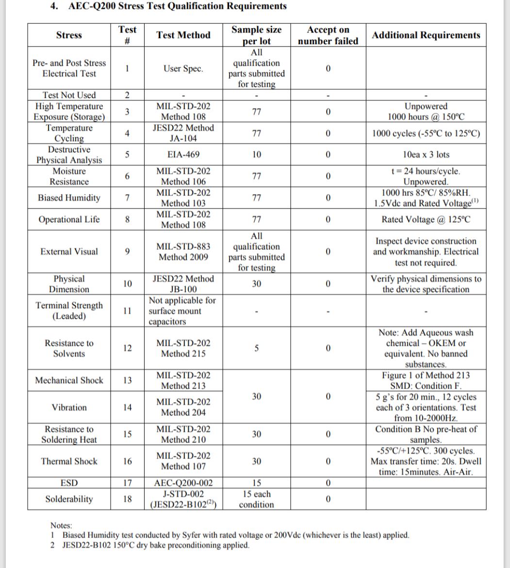 如上所述,被視為符合 AEC-Q200 標準的測試和資格流程是業(yè)內(nèi)最嚴格的流程之一。以下是這些部件在被視為符合 AEC-Q200 要求之前所需測試類型的一些示例: