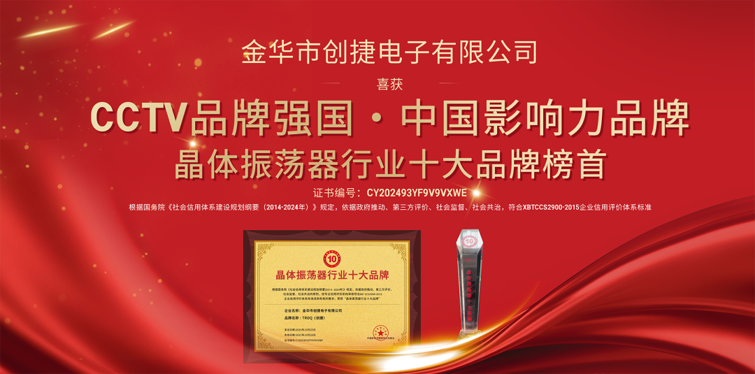實(shí)力認(rèn)證!TROQ創(chuàng)捷電子榮獲CCTV品牌強(qiáng)國·中國品牌創(chuàng)新成果-中國晶體振蕩器十大品牌榜首
